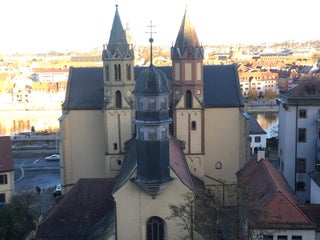 Die schöne, renovierte Kirche ist der älteste Kirchenbau der Stadt und dem ersten Bischof Würzburgs, dem Hl. Burkard, geweiht.