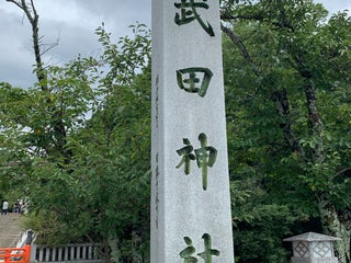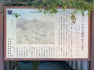武田神社の鳥居の前にこの石碑が建っています。武田神社の由来はこの地に武田信玄の父・信虎が館を移したことから始まっています。