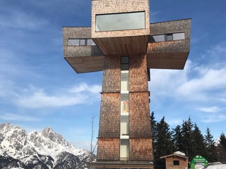 This place can be booked for events and offers great view of the area. The mountain stands alone, surrounded by valleys on all sides. Definitely worth a visit!