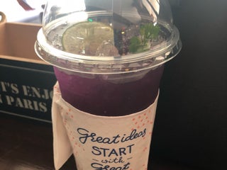 Green tea, brownie, place to cool off on a hot day.