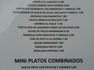 Muy buenas raciones y platos combinados (que al contrario de lo que anuncian de "mini" tienen poco). Un bar muy agradable para picotear o comer algo rápido.