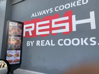 Spacious interior and freshly fried chicken.