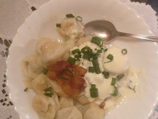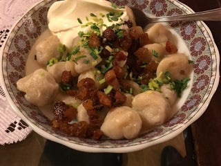 Amazing handmade dumplings. Authentic culinary heritage of Eastern Lithuania. Plus you get to hear all the lovely / strange talks of other guests since there are only 4 tables in a tiny room.