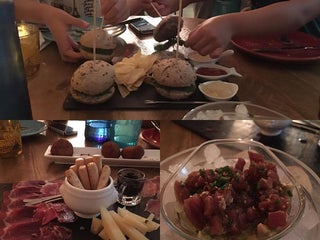 Great atmosphere, fabulous tapas! Ensaladas, croquetas, plumas con queso, arroz con setas e lagostins, "churros con café" 5*, Torta de queso authentic, and delicious brownie (fondant).