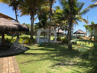 Chegar à praia é fácil: basta cruzar o grande jardim repleto de coqueiros.