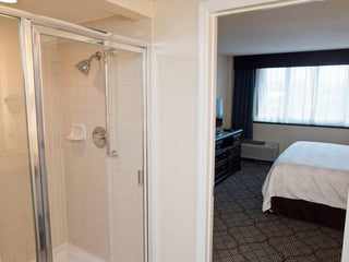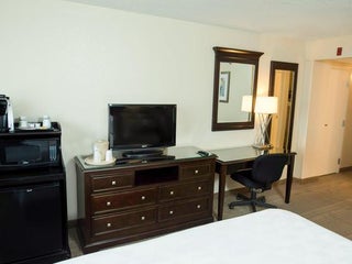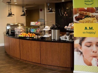 Do not stay here. Gross floors. Broken beds. Only free breakfast if you booked at holidayinn.com, blaring music by the pool all night which you can hear from your room, even when the pool is closed.