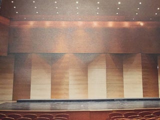 En la entrada está una de las copias en poliéster del Giraldillo, que además es a color; el escenario de la sala sigue en la misma ubicación de lo que antes fue el antiguo Teatro Alvarez Quintero.