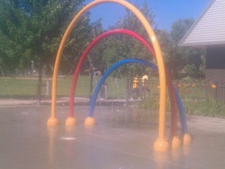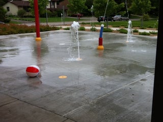 New splash pad! We also call it "Pirate Park" due to the big pirate ship to climb on.