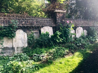Look out for the line of gravestones arranged to mark the separation of the two burial grounds.