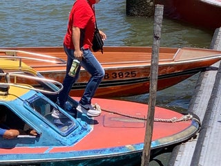 Yellow-blue coloured boat operator (counter booth next to the river) is more reliable.